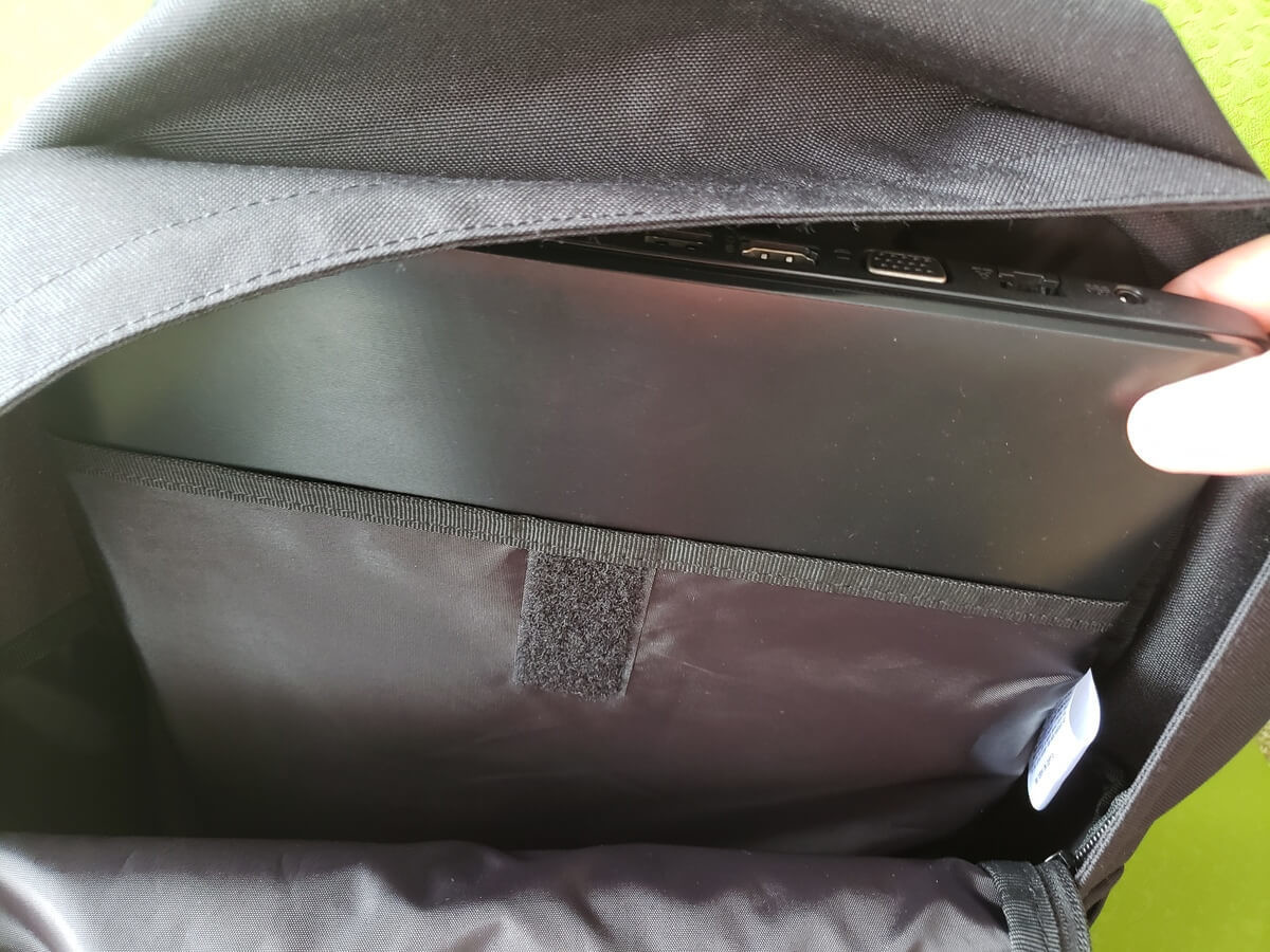 ノートパソコンがすっぽり入る部分もぬかりありません。マウスやケーブル類のスペースも十分です!