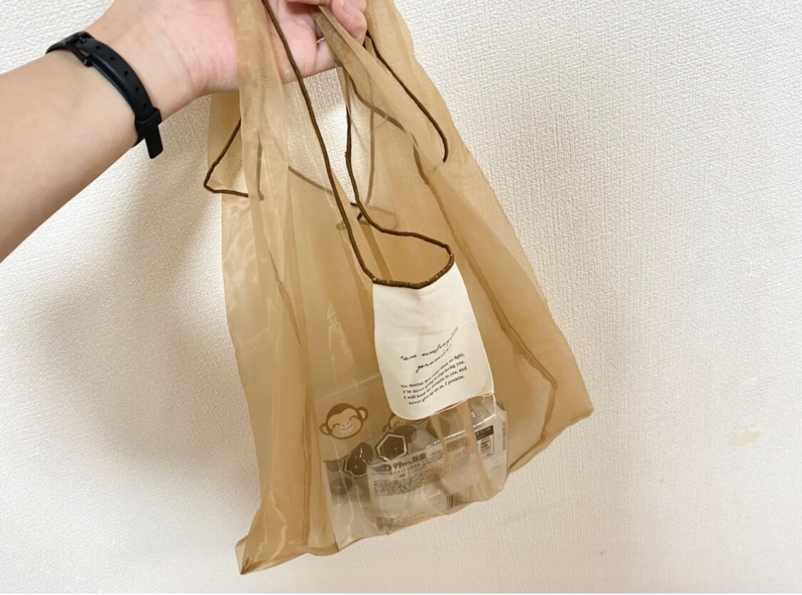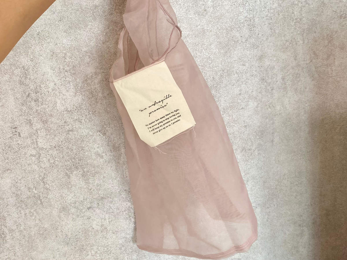 今回購入したのが、こちらの「オーガンジートートバッグ(110円 税込)」です。