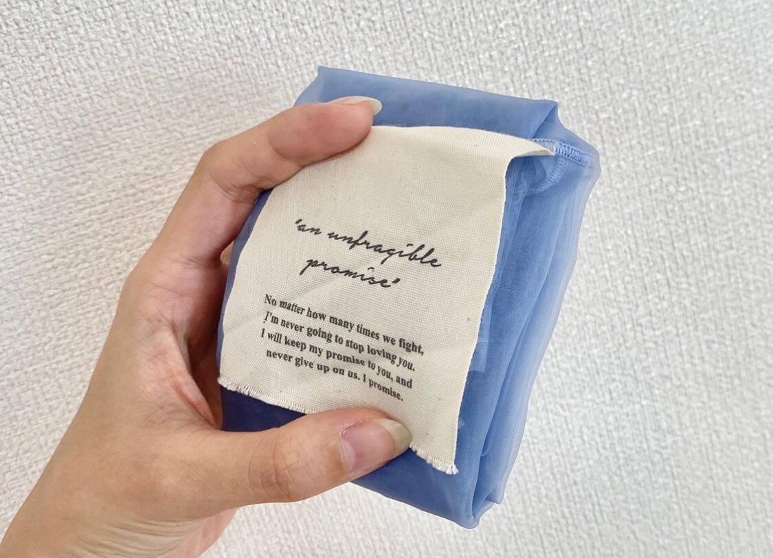 オーガンジー素材なので柔らかく、シワなども気にせず持ち歩くことができます。