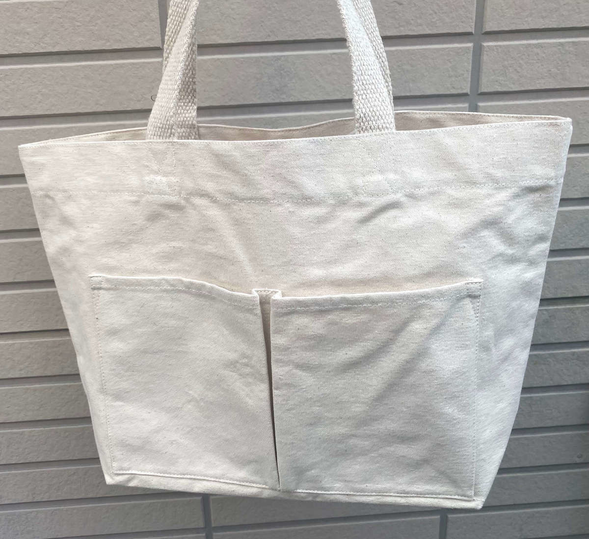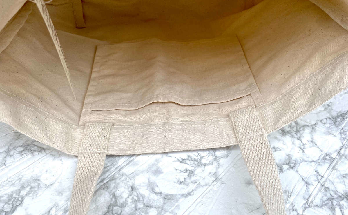こちらのマイトートバッグには、外側に2つ、内側に1つポケットが付いています。