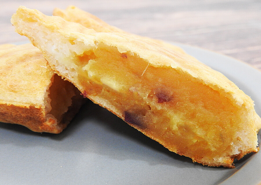 一口食べた第一印象は「焼きいもみたい」。ほくほくとした鳴門金時いもあんが口の中いっぱいに広がって、パリパリ系の皮とのハーモニーもすばらしいと感じました。