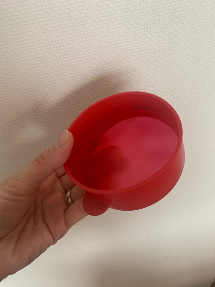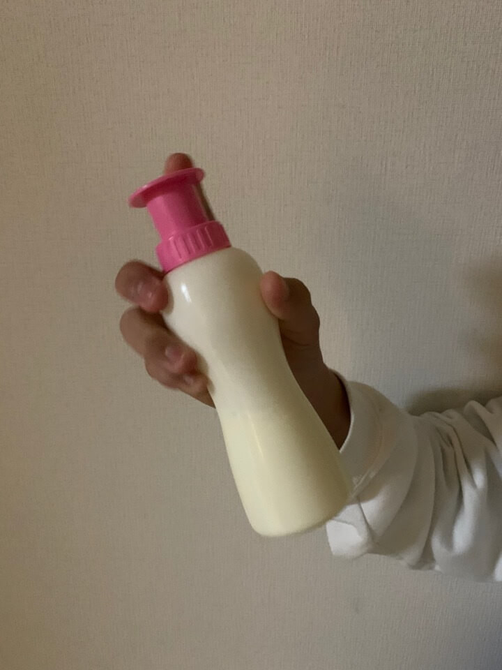 容器を逆さにして、クリームが下に落ちてくるのを待ってみたのですが、あまり落ちてこず……。