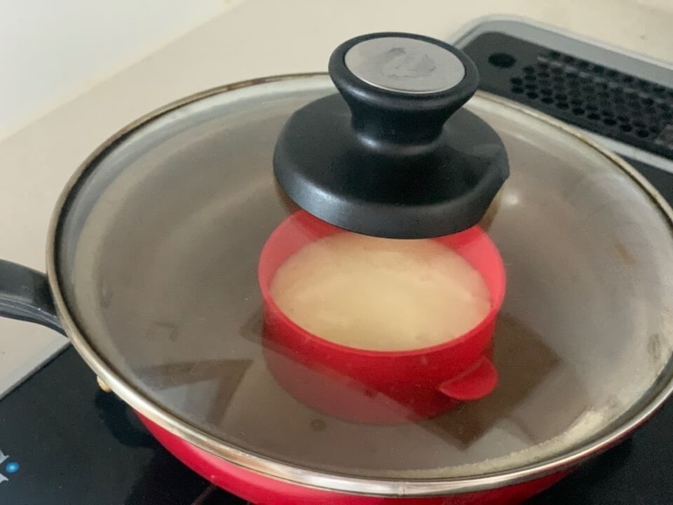 フライパンにフタをして、弱火で7分、ひっくり返して3分。