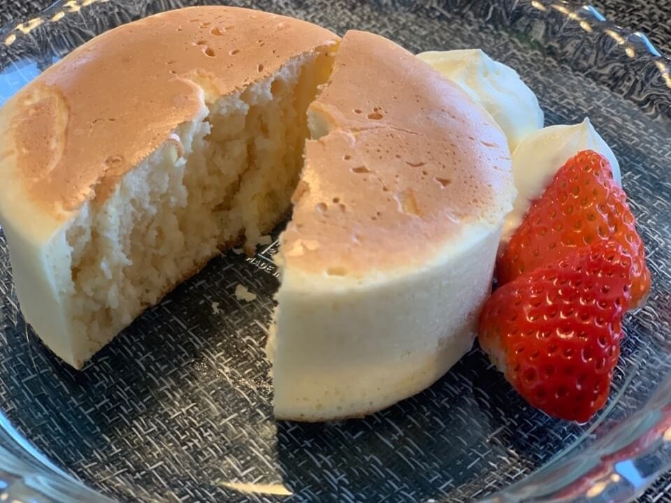 改めて「ふりふりクリームメーカー」で作ったホイップといちごを添えてみました。本当に簡単で、とてもきれいに焼けるのでおすすめです!