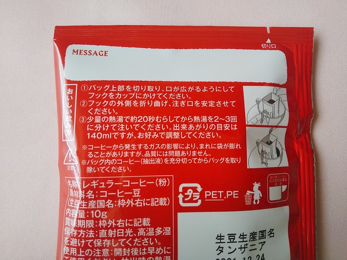 安価なドリップバッグコーヒーは豆の量が7gくらいのものが多めですが、こちらは10gとたっぷり。 しっかり淹れられるので、お湯を多めにしてゴクゴク飲んでもOK。 私は牛乳を足して、カフェオレで楽しみました。