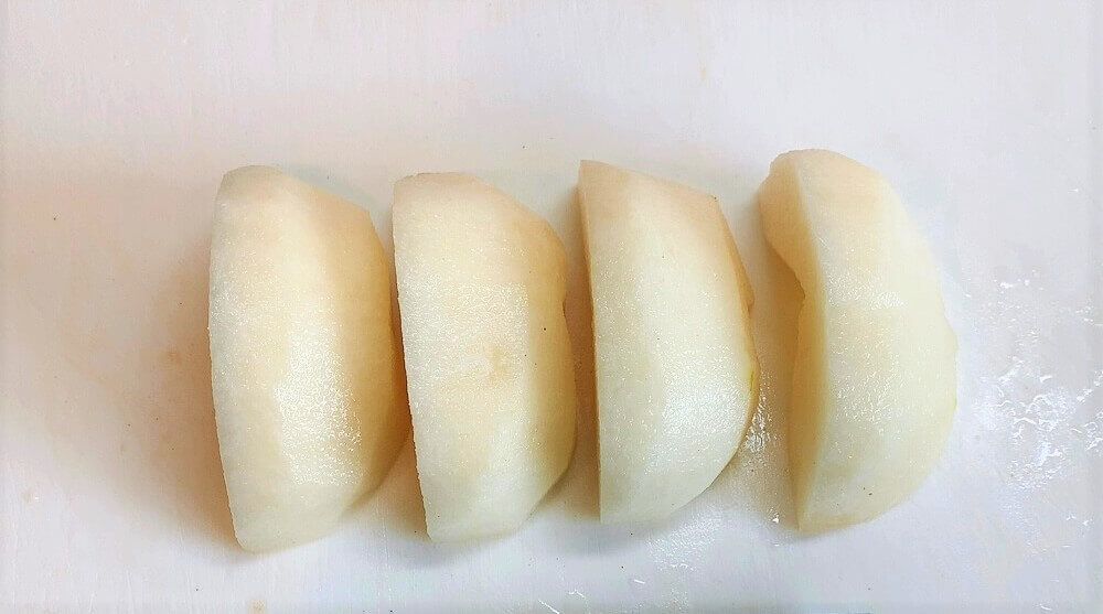 梨は「皮と実の間」が一番甘いので、皮は極力薄~く剥くようにしましょう。この間の部分を捨てないように注意が必要です!