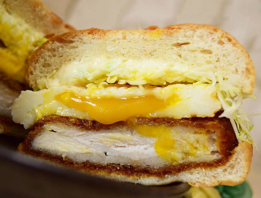 つづいて、ケンタッキー「とろ~り月見和風チキンカツサンド」をチェック。たまごがどろーんとしていますね。半熟たまご好きにはたまりません。