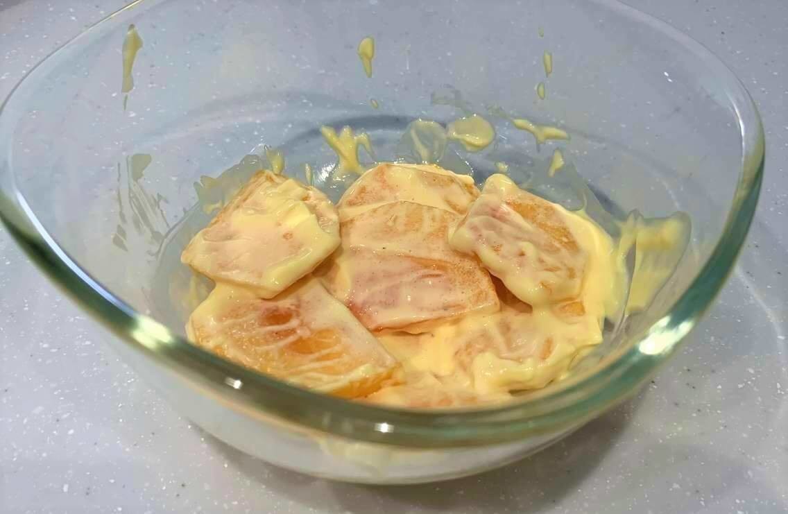 熟れすぎた柿のトースト②柿をマヨネーズと和える