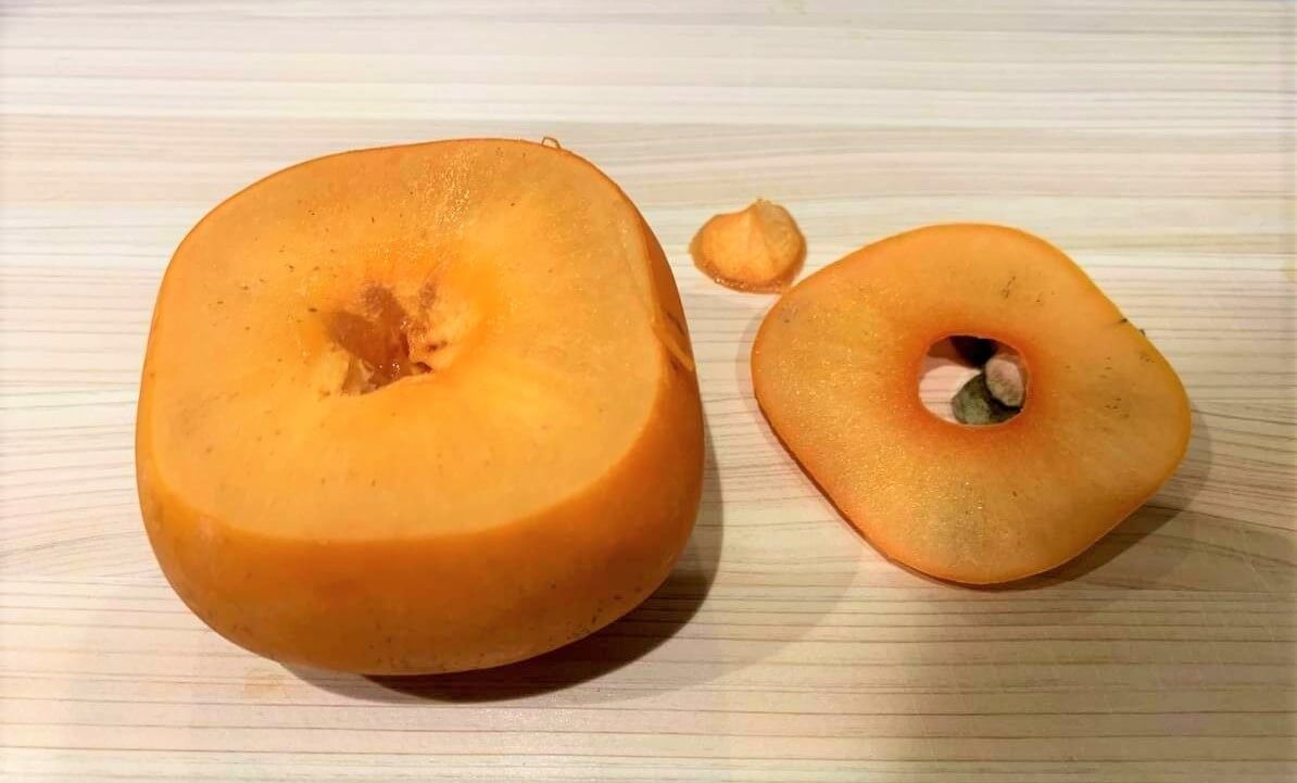 熟れすぎた柿でシャーベット②柿のヘタ部分をスライスして完成
