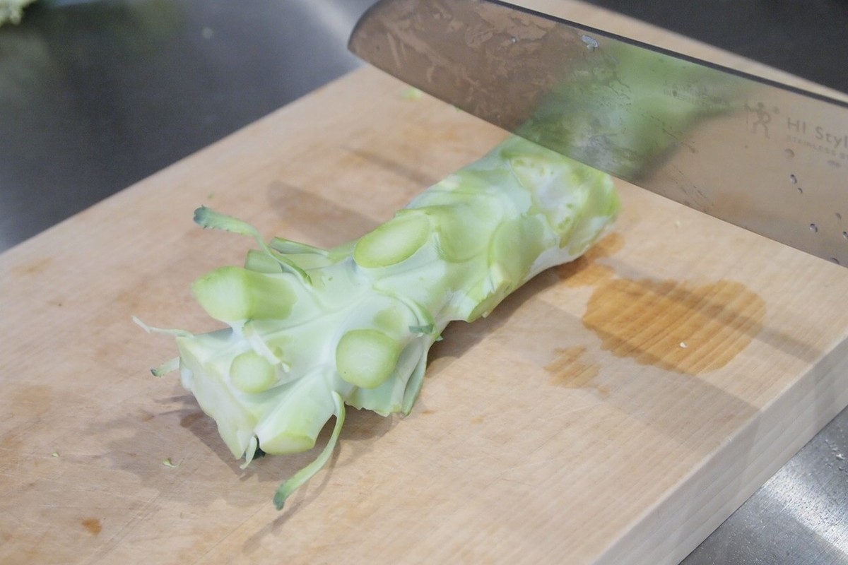 手順➀ブロッコリーの茎を輪切りにカット