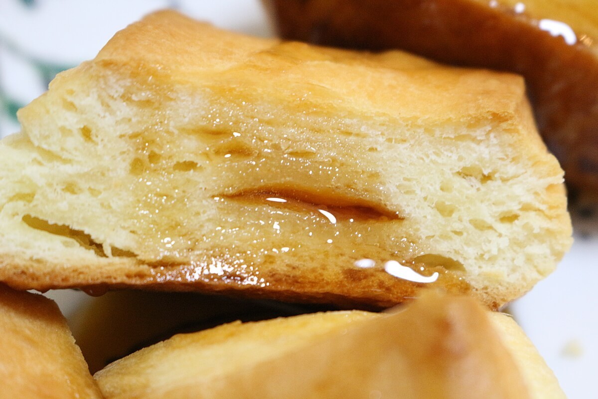 甘さは控えめで、ほんのりバターの風味がします。 家族評では、お店から提供されるケンタッキーのビスケットには勝りませんが……レンチンするだけで気軽に食べられる危険なスイーツには変わりありません(笑)。