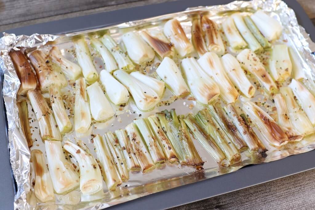こちらは切った長ネギを並べてオリーブオイルとハーブソルトをかけてオーブンで焼いただけの長ネギのグリルなんですが、とってもおいしいんです。
