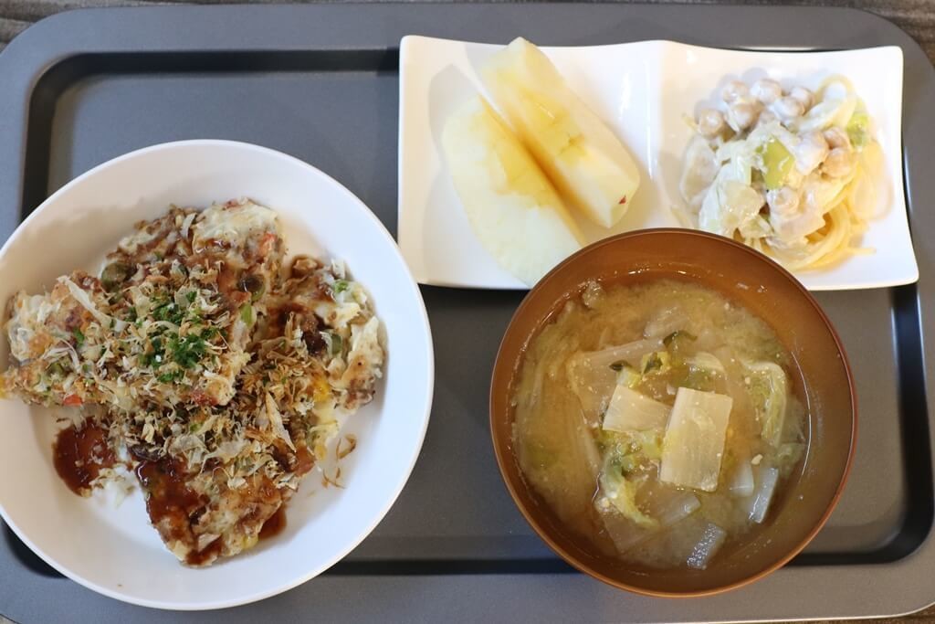 主食に汁物、おかずを乗せてもまだ余裕があるので飲み物も乗せていいかもしれません。 子どもたちに自分の分は自分で食器を片づけてほしくても今までは食器や箸などを一度に運べなかったのですが、このトレーがあれば一人で食事の後の食器の片付けをやってくれそうです。