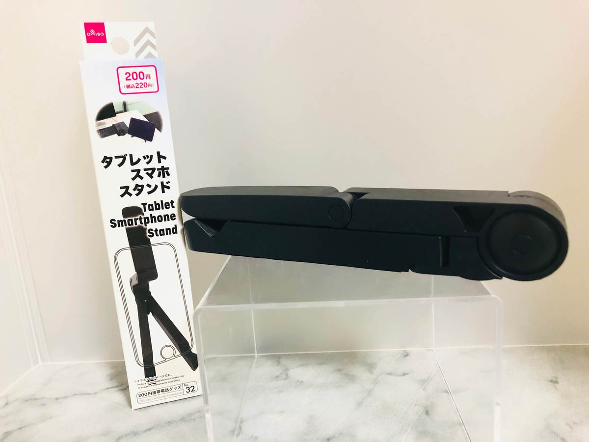 私が初めて訪れたダイソーで発見したのが「タブレットスマホスタンド」(220円 税込)。スマホやiPad、本などが大きさに左右されることなく、手軽に立て掛けておける便利アイテム。
