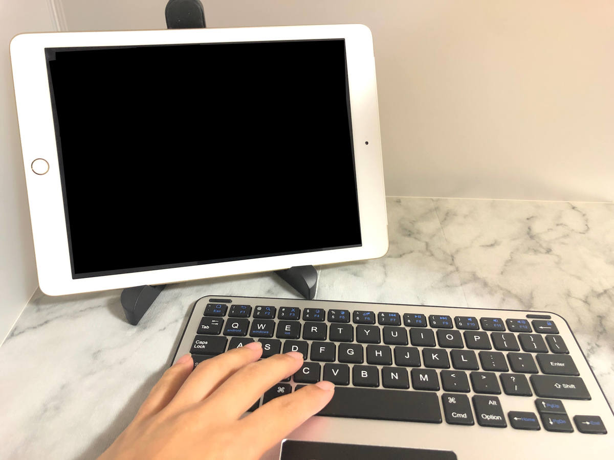 動画をみたり、仕事でも使えて何かと便利なiPadは、頭の部分はそのままで開閉するだけでしっかりと支えてくれます。
