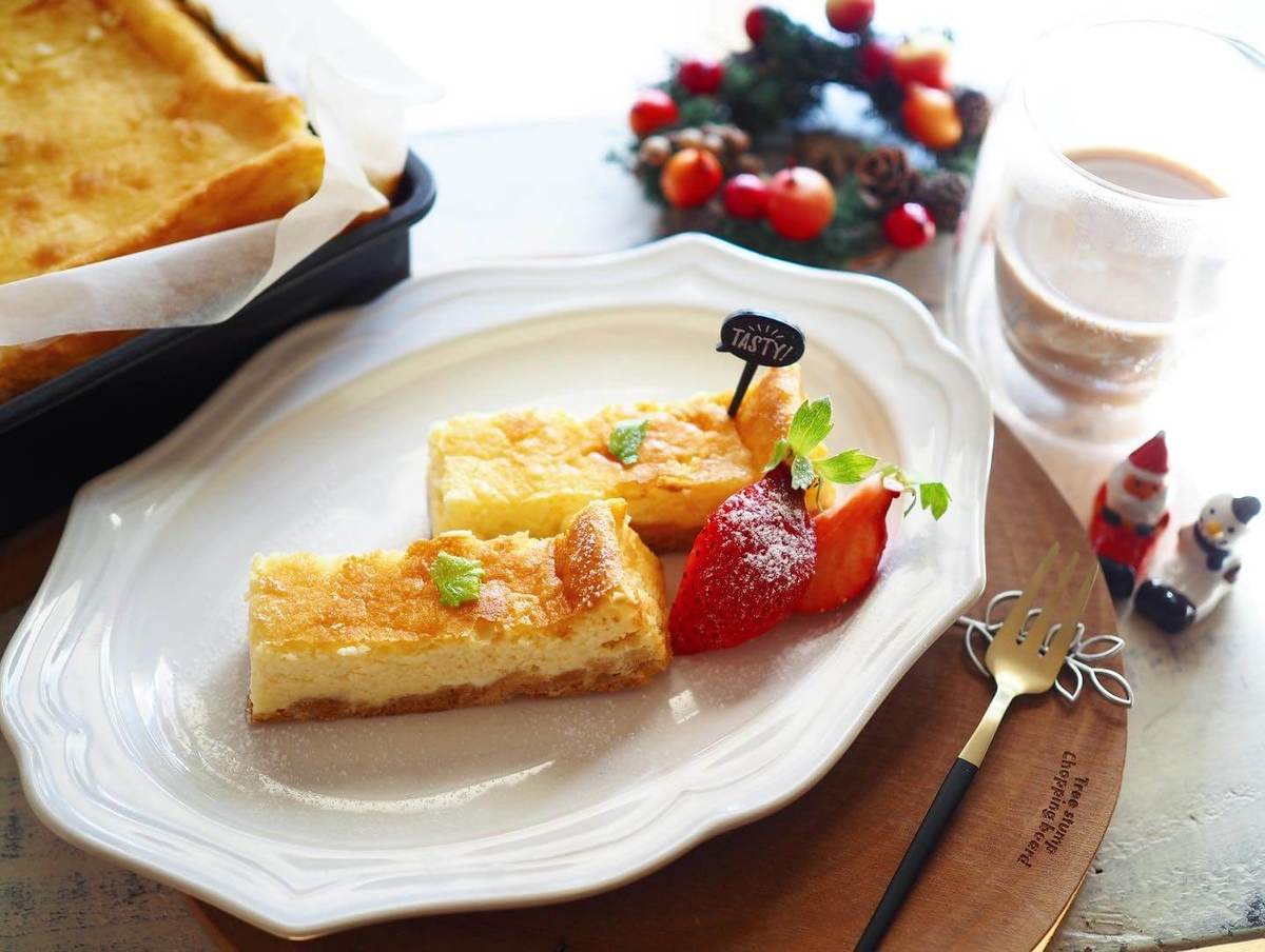 フルーツの飾り付けや生クリームをデコレーションする自信がない……という方も材料を混ぜてオーブンで焼くだけのチーズケーキなら失敗しにくくおもてなしスイーツにもぴったり♪