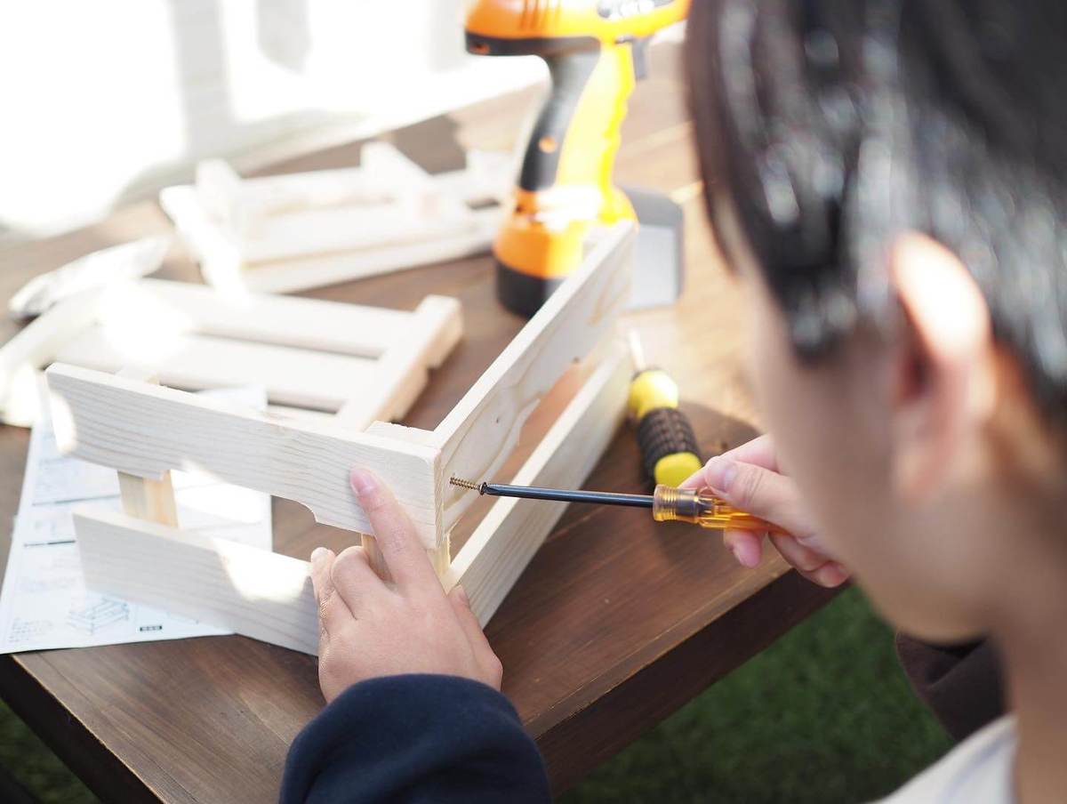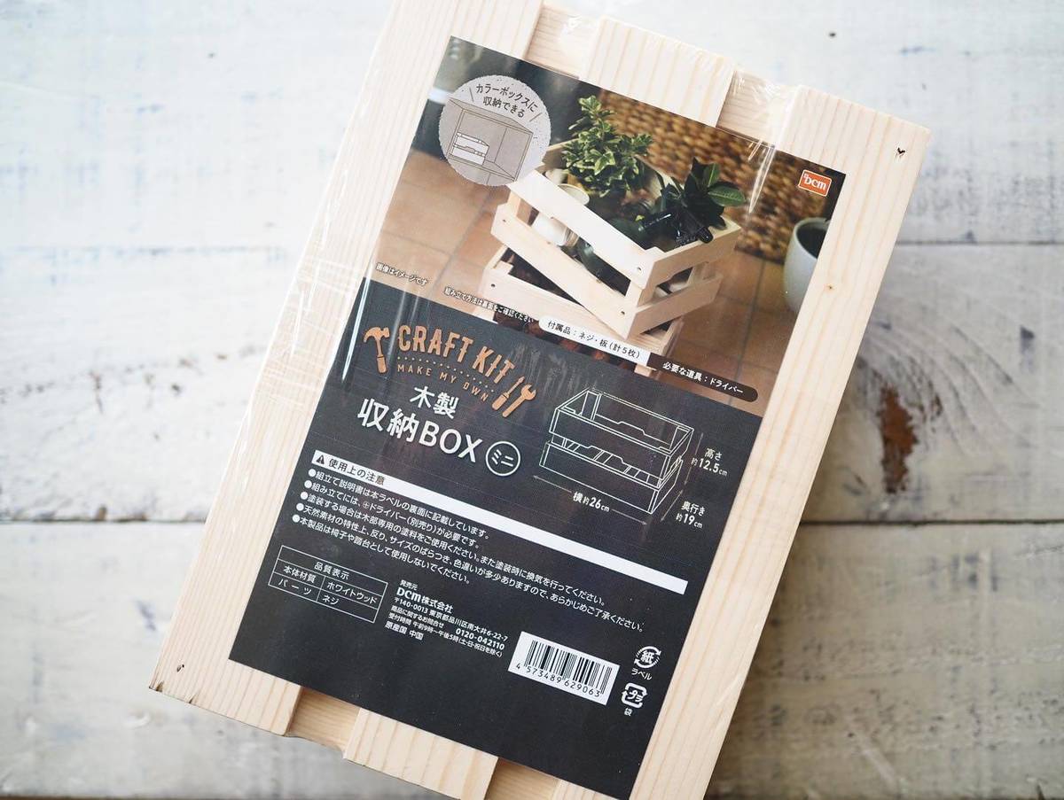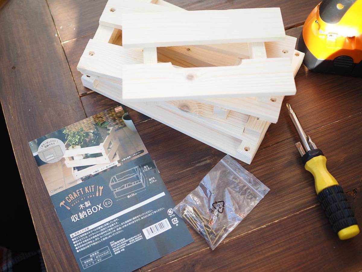 「木製収納BOX ミニ」にはネジ・板(計5枚)が付属しているので木材カットも不要で、必要な道具はドライバーのみです。
