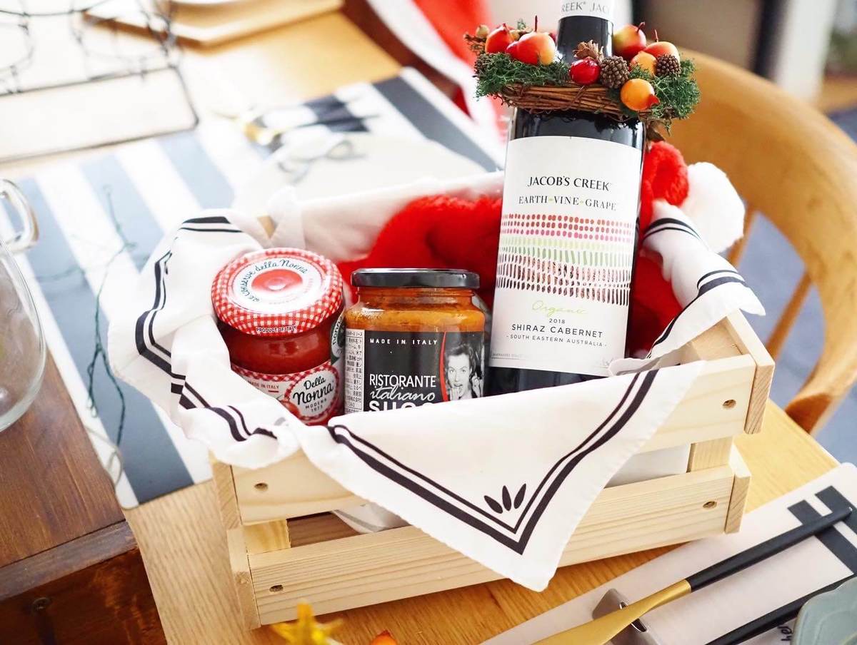今回は、クリスマス用のワインや食材などを入れてみました! 同サイズは重ねられる仕様なのでいくつか組み合わせてみてもおしゃれですね。