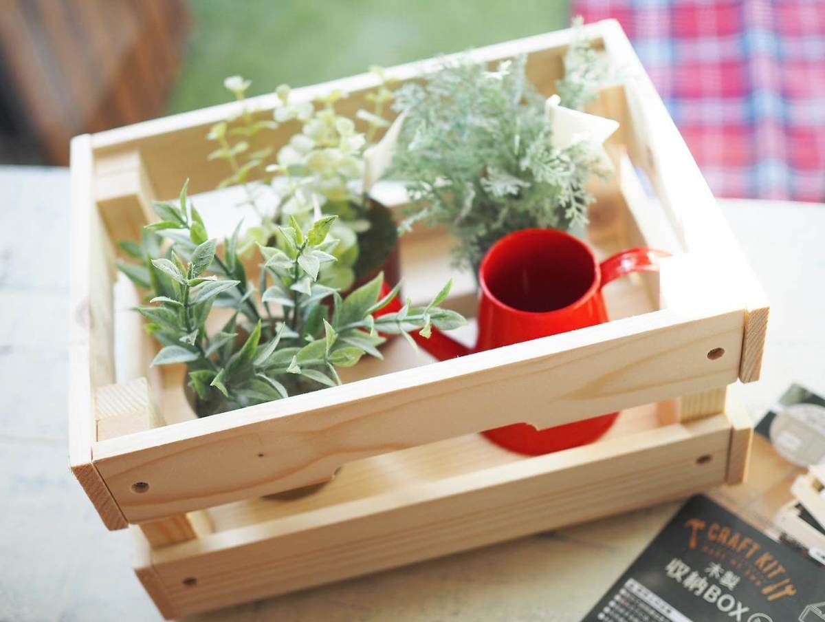 完成した木箱は、カラーボックスにも入るサイズで雑貨やおもちゃなどをおしゃれに収納しておくのにぴったり♪