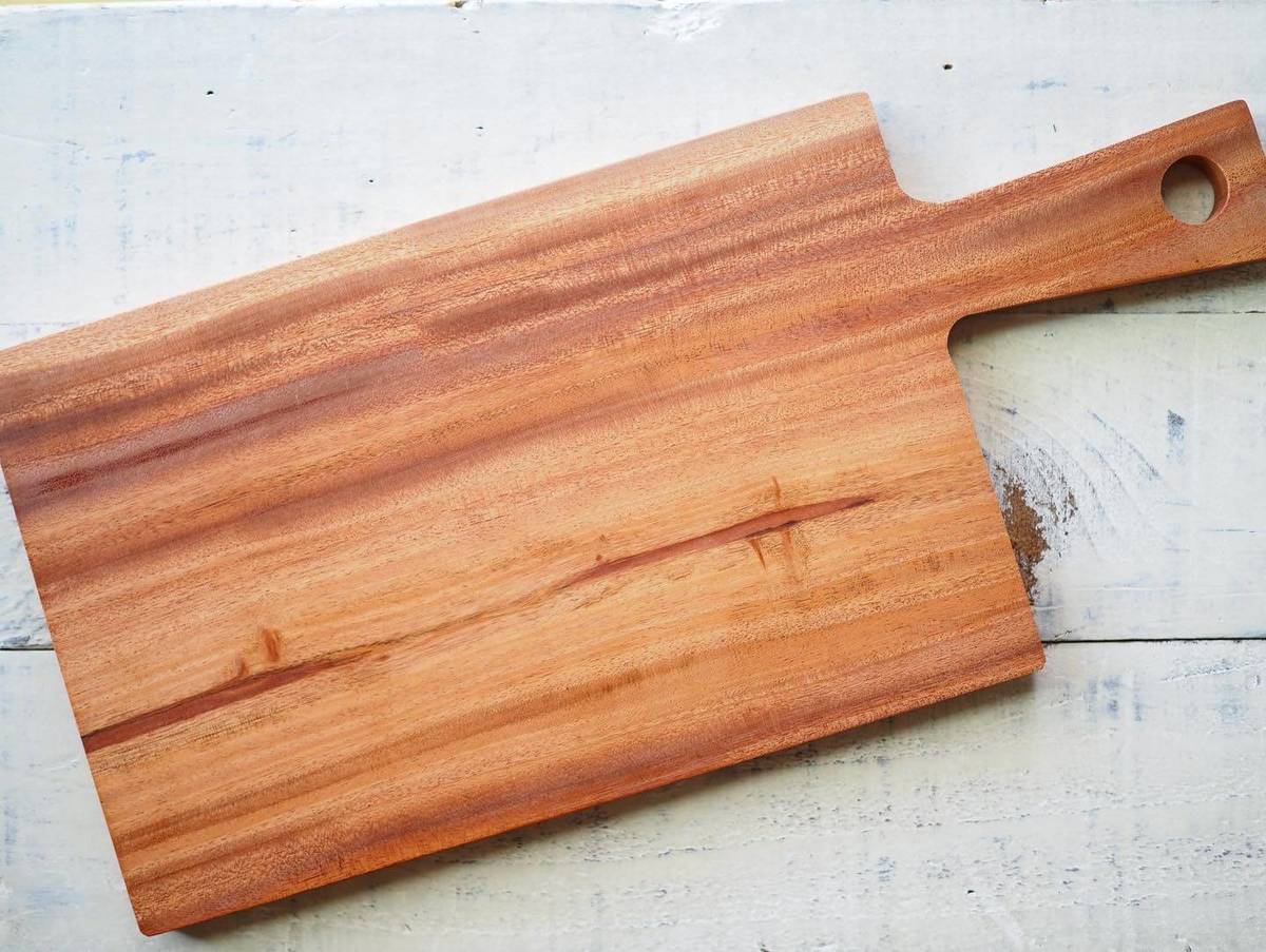 ナチュラルな風合いの木製ボードは39cmのロングサイズで、ピザやお肉料理・スイーツまで素敵に見せてくれますよ。