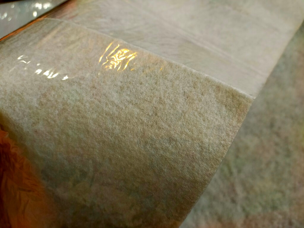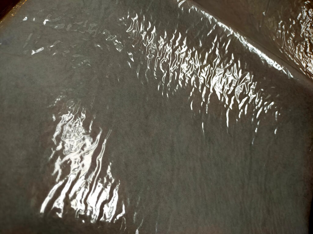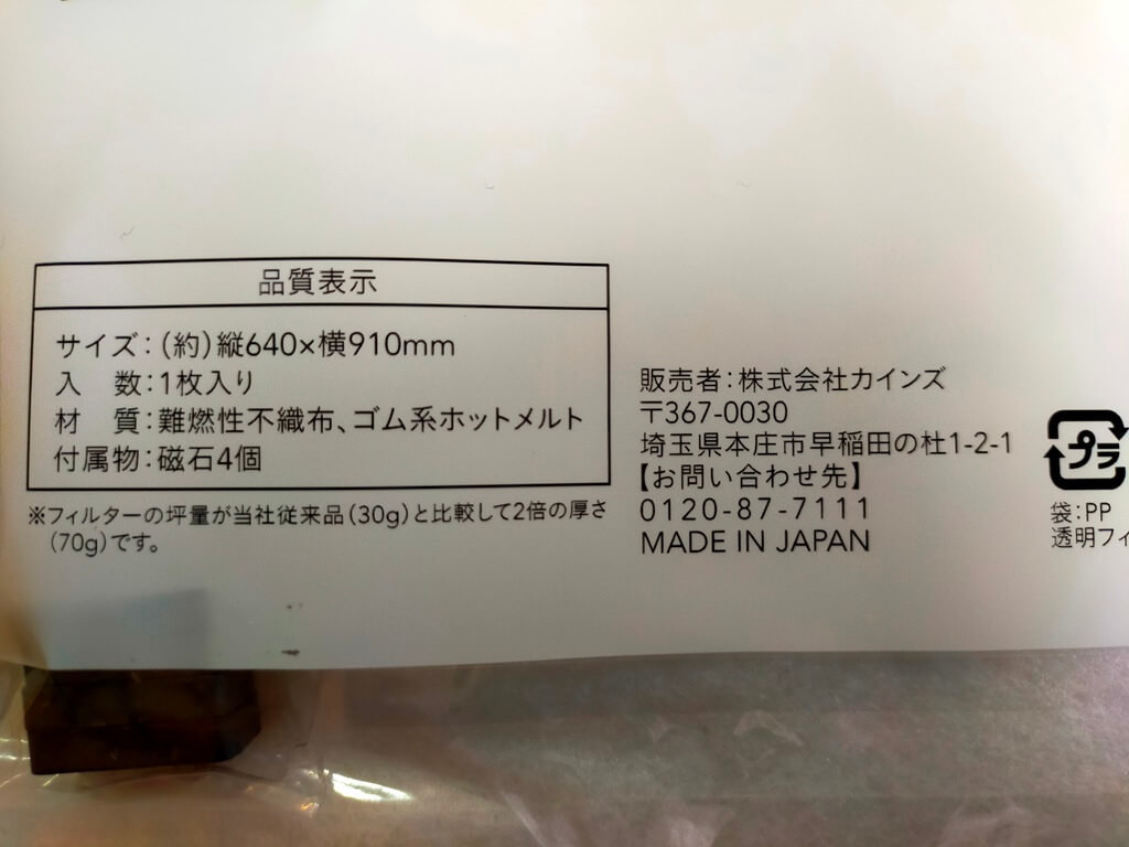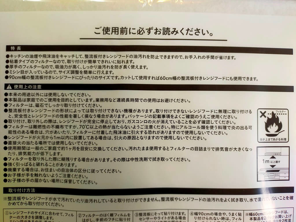 こちらのレンジフードフィルター、筆者がいつも使っていたものと違っていた点がいくつかあります。 まずはフィルターの片面にフィルムがついていたこと。