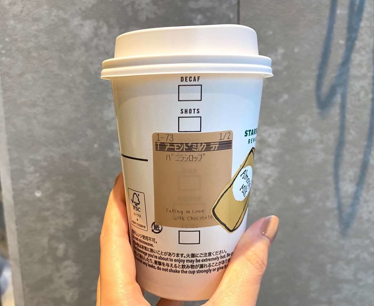 アーモンドミルクラテを注文する時、一番良く注文するカスタマイズがこちら。