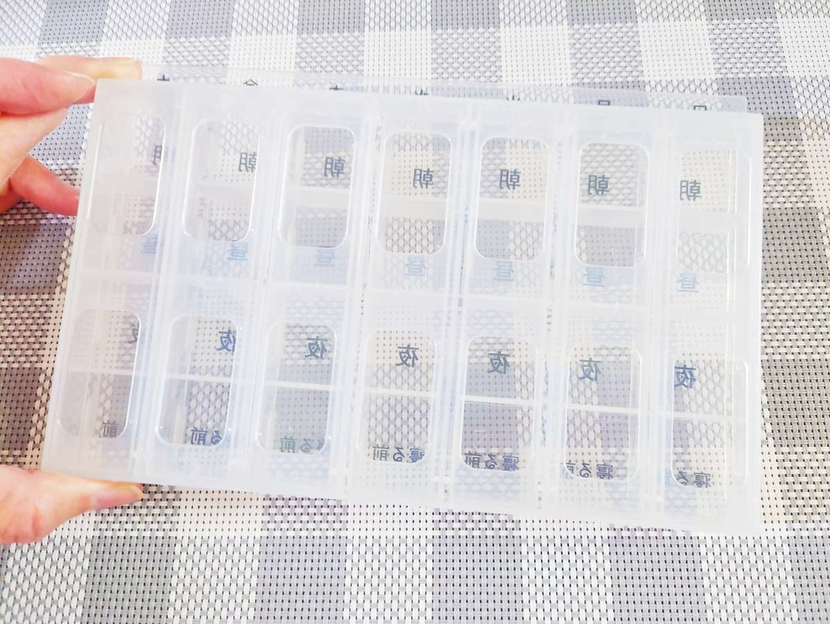 1番上に曜日も記載されているので、例えば「水曜日の昼はこれ!」と、すぐに必要な薬を取り出せますね。