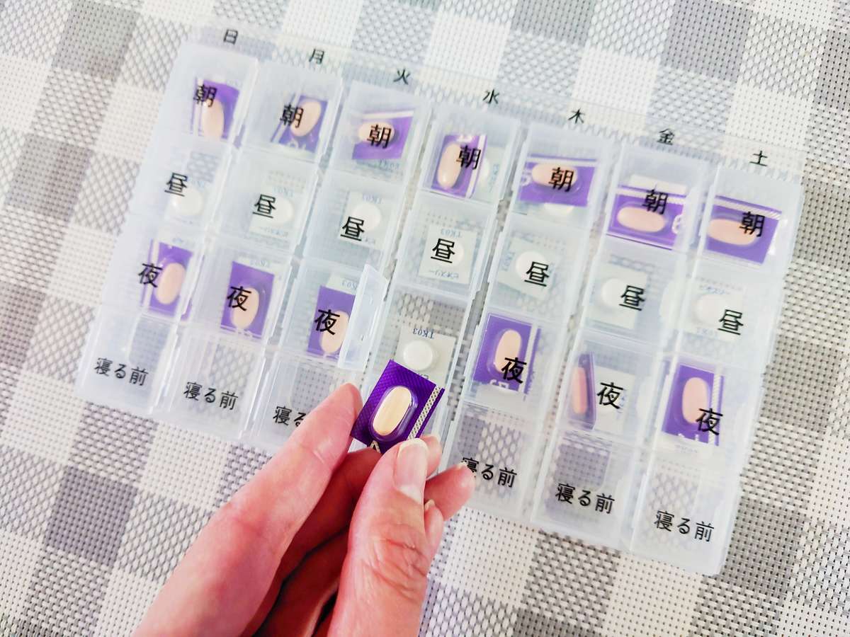 ダイソーのピルケースに入れて管理すれば、飲み忘れも回避できます。