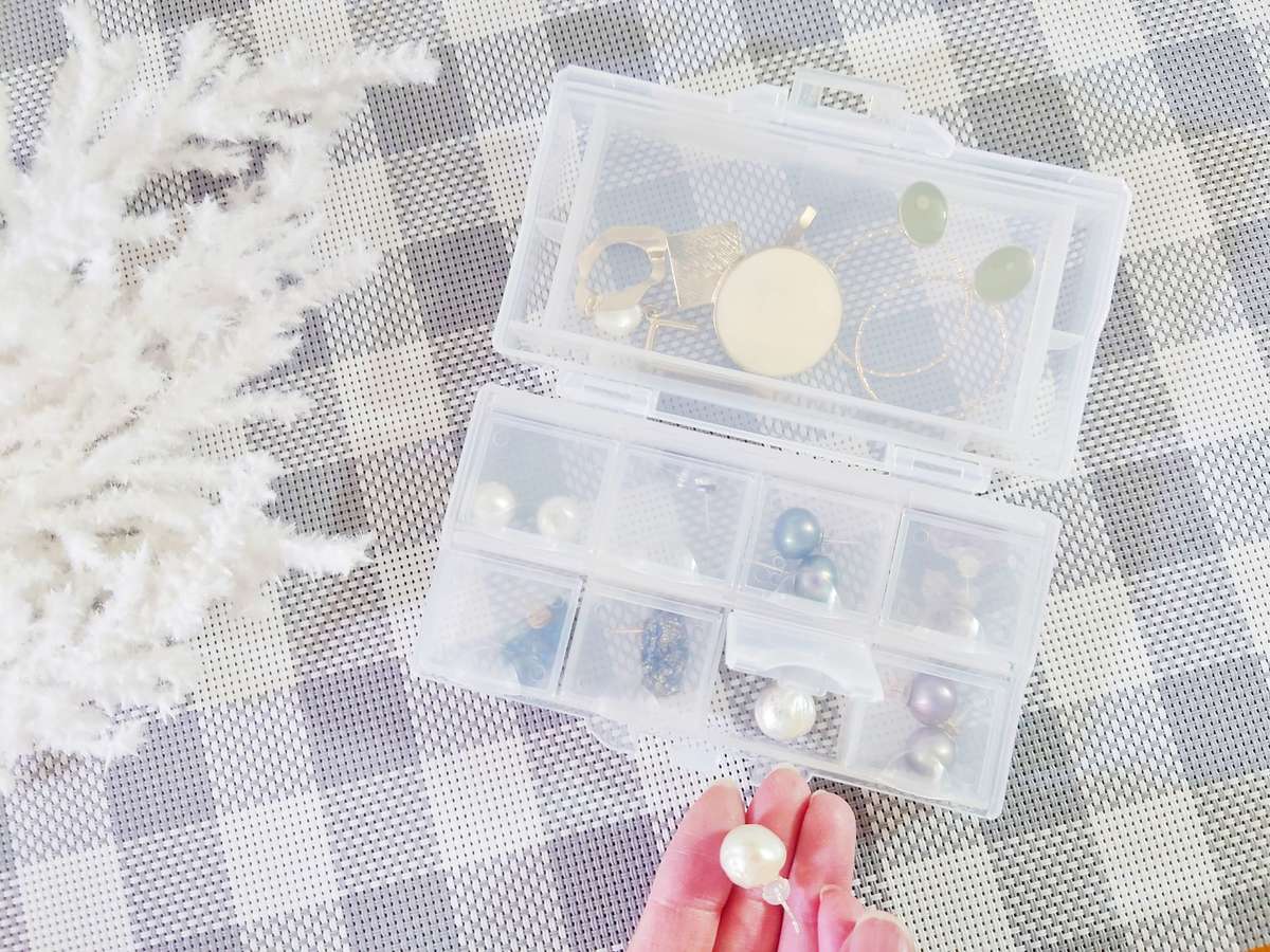 小さいジッパー袋などで管理しがちなパーツ類ですが、取り出す時に不便なんですよね。ピルケースなら、小分けにできて一目瞭然!見やすいだけでなく、取り出しやすくてイイ感じです!