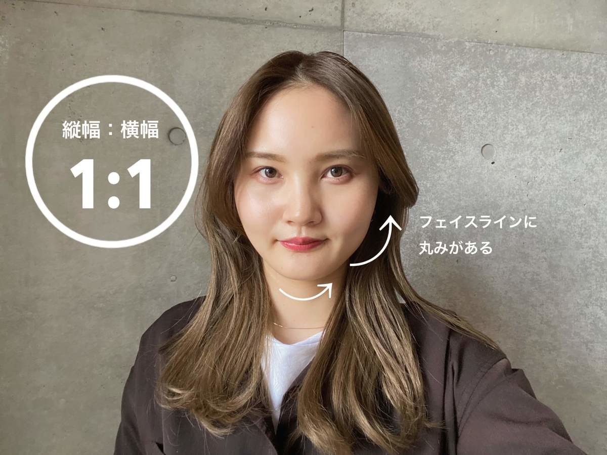 丸顔の特徴は、顔の縦幅と横幅がほぼ等しく、ファイスラインや顎先に丸みがあることです。