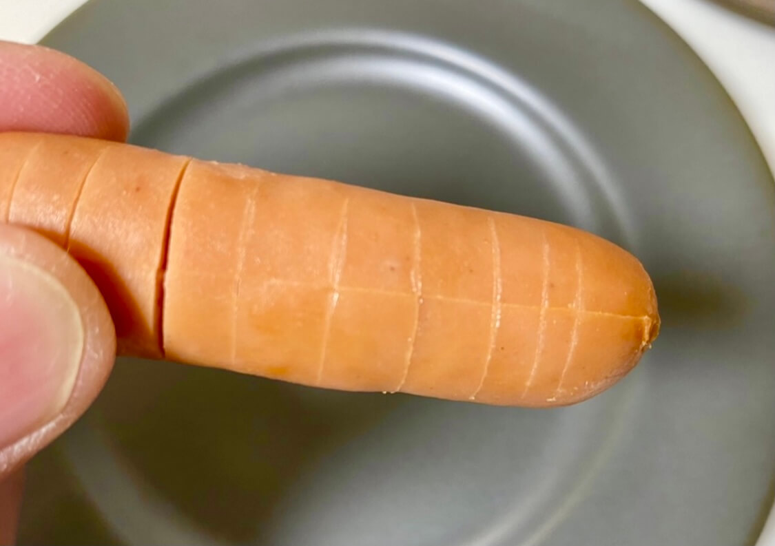 「いやいや、ウインナーに切り込みならいつも入れてるけど...」と思った方も多いはず。ですが、今回の裏ワザの切り込み具合は、きっと想像の倍以上!