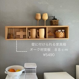 オーク材の天板のものがドンピシャで好みでした。カップボードを購入するよりは遥かにお安く済むことに気づき、こちらを導入することにしました。