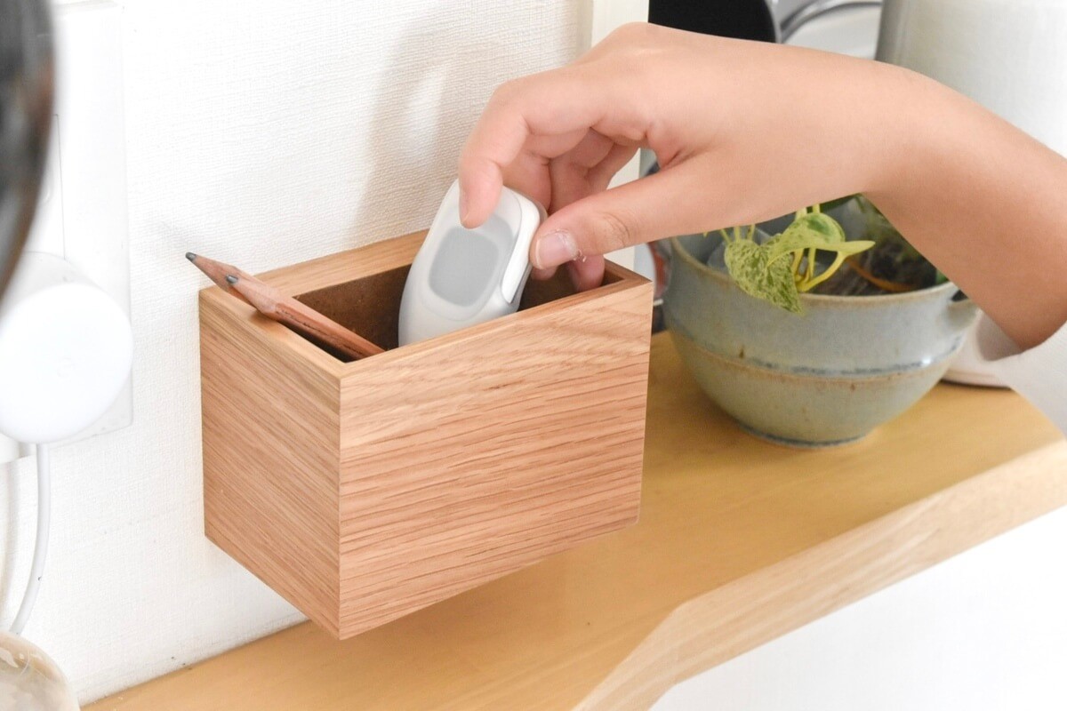 壁に付けられる家具シリーズは、画鋲のような小さいピンを使って取り付けられる仕様で、賃貸にお住まいの方でも安心して取り付けられます。種類豊富に販売されているため、インテリアや必要な収納に合わせて使い分けられるところもうれしいポイント。