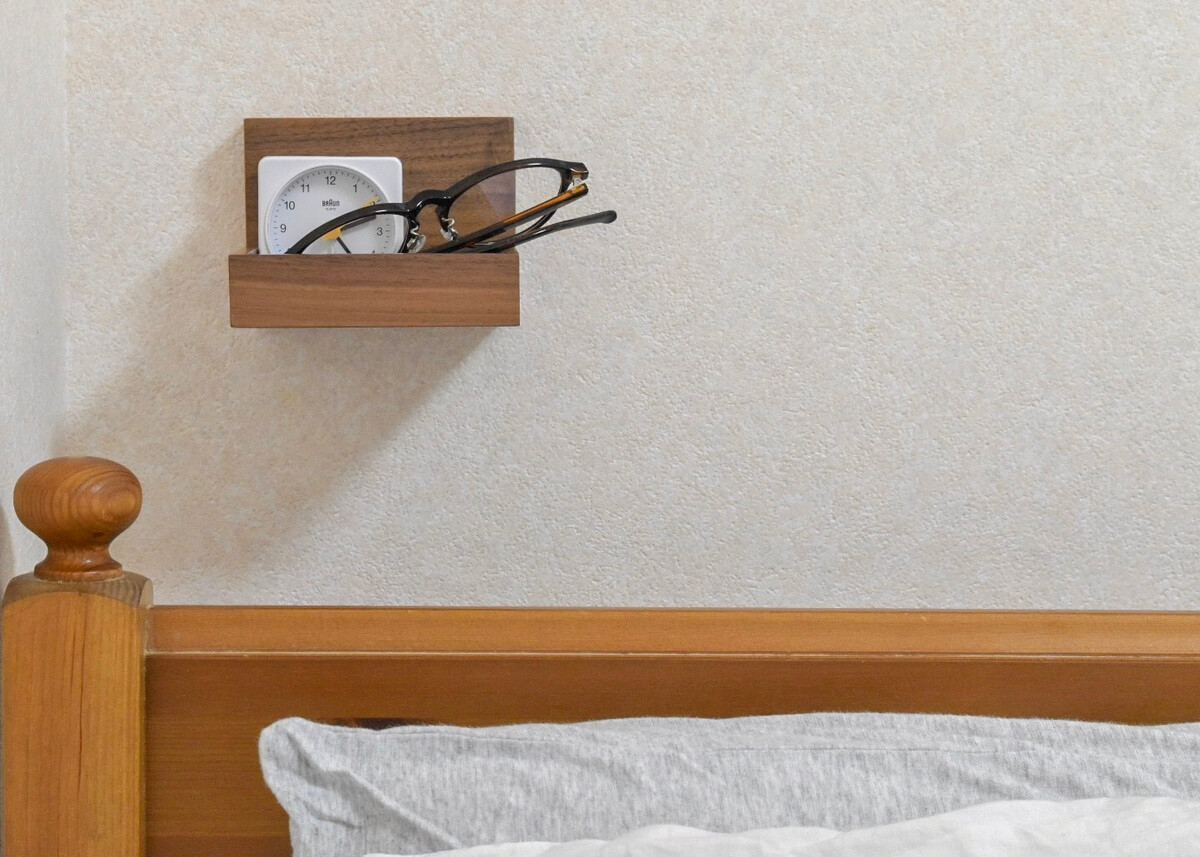 ベッド近くに収納がなく、枕元にポンと置いていたものをトレーに置くことにしました。メガネ置き場がなく踏んで壊してしまうかもと心配でしたが、あっという間に悩みが解消されました。