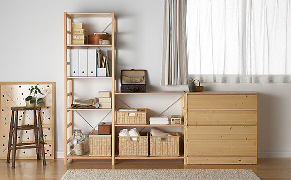 どんなインテリアにも馴染みやすいユニットシェルフや、好きな場所に収納棚やポケットを設置できる「壁に付けられる家具」シリーズなど、便利でおしゃれな収納家具が揃っており、アイデア次第で様々な使い方が可能です。