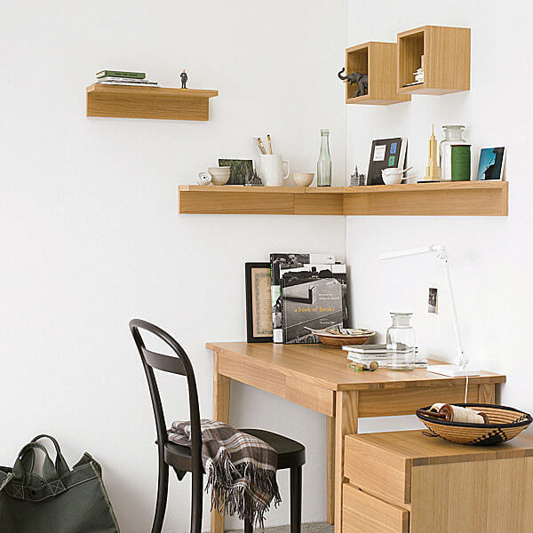 またこちらは、無印良品の壁に付けられる家具『棚シリーズ』と幅(奥行き)が一致するようになっているので、併用可能です。つなげて取り付けて、デッドスペースになっているコーナーを有効に活用しましょう。
