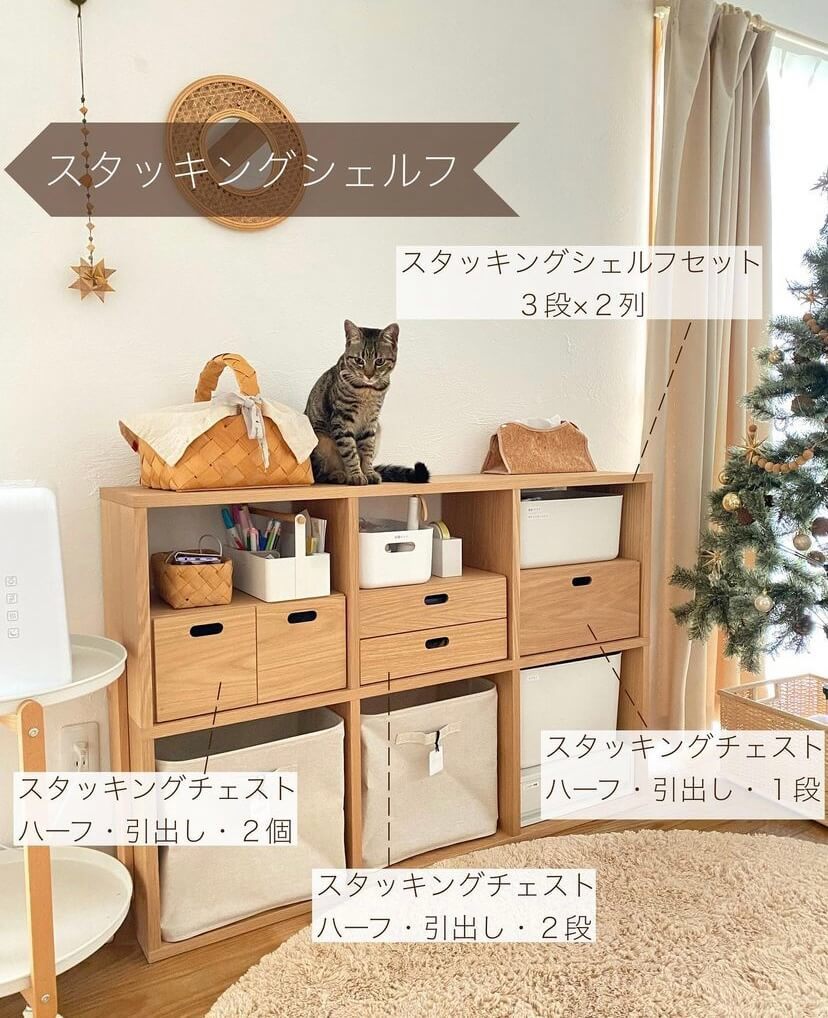 ヨムーノライターのpuu.tuuliさんが、無印良品のスタッキングシェルフをリビングに設置した時の様子を紹介してくれました。