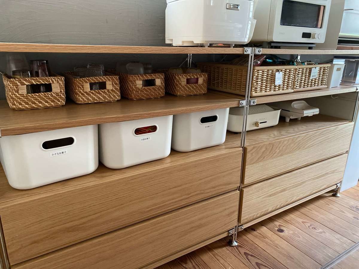 【キッチン】無印良品のチェストにニトリの整理トレーがシンデレラフィット