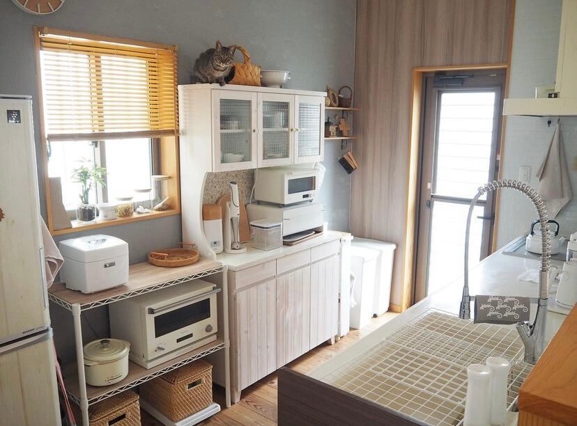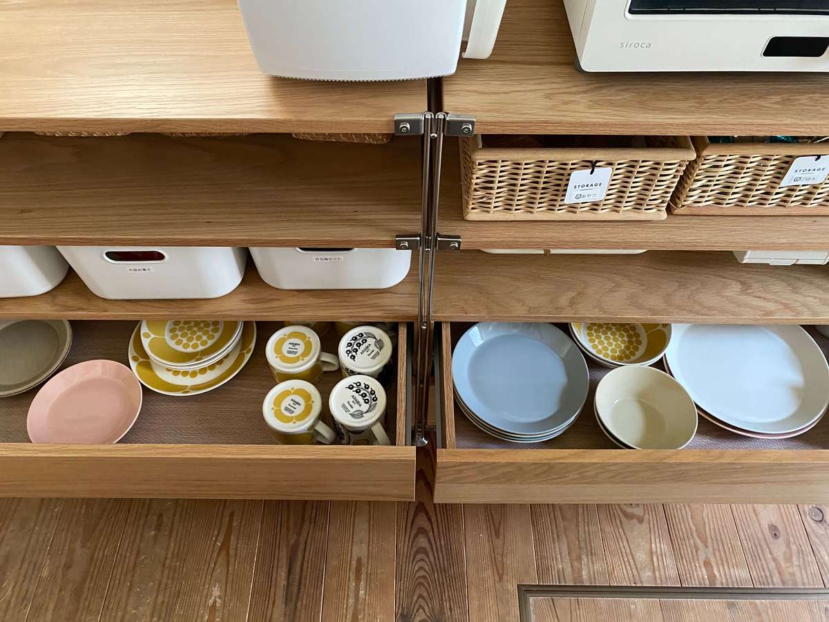 @dearlife_homeさんは、キッチンの食器棚として無印良品のオーク材チェストを愛用しています。